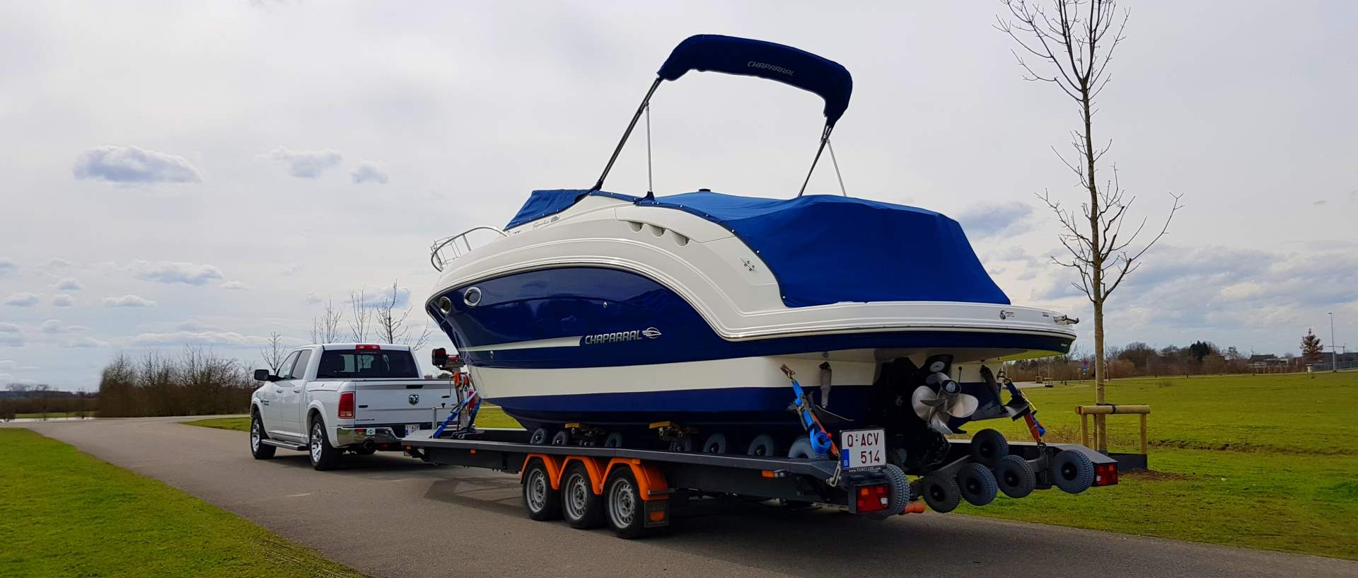 Onze custom VanClaes trailer is speciaal ontwikkeld voor het vervoeren van diverse types van boten met een maximaal gewicht van 2500 kg, 10m lang en 2,5m breed.